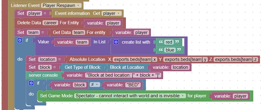 When a player's bed is destroyed and the player tries to respawn, they are placed into spectator mode