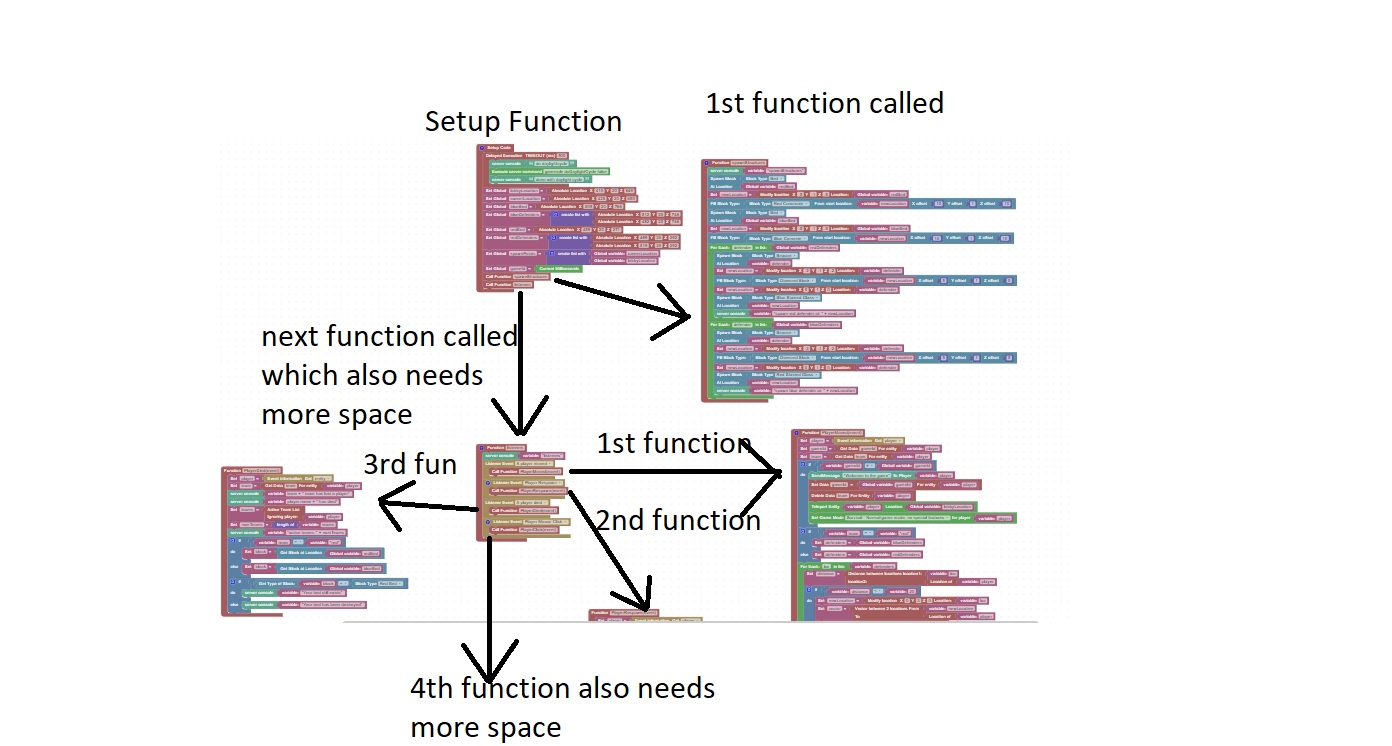 At the very top is the setup code, functions it calls will be arranged in a clock based on order of call