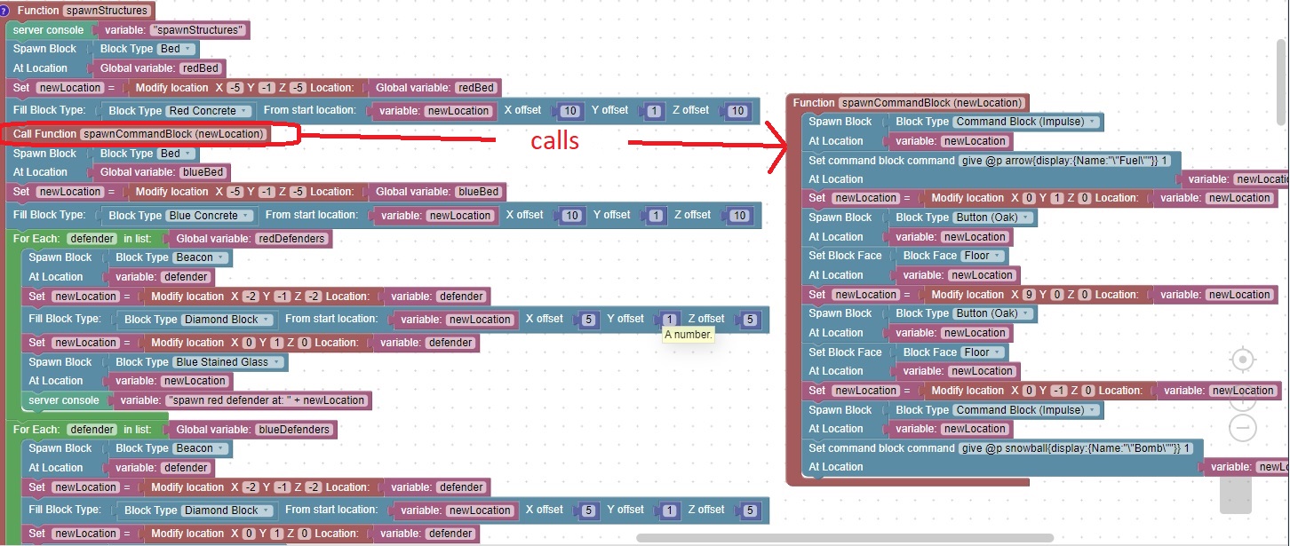 The homework is to call the function again for the blue team so that they also have command blocks available