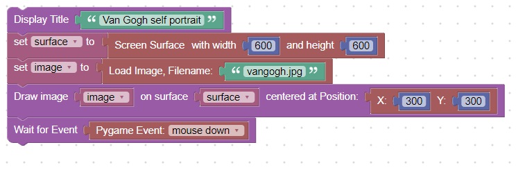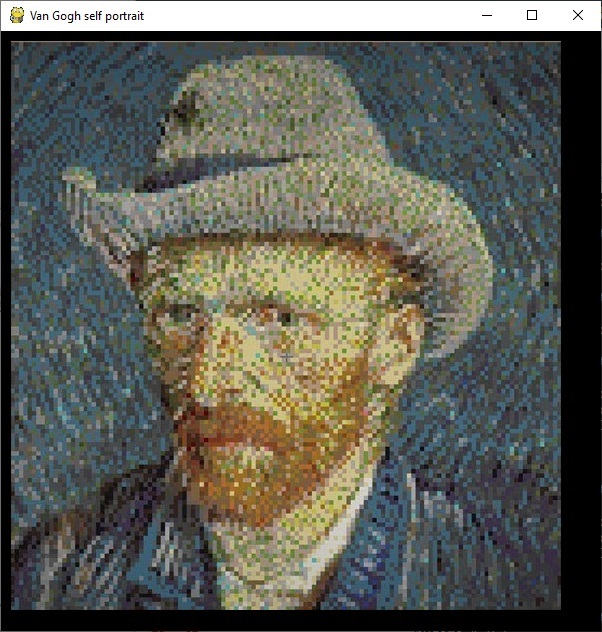 This code will draw an image of Van Gogh until a mouse button is pressed.