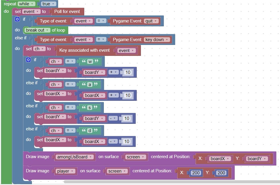 This code will move the board based on the player press of wasd.